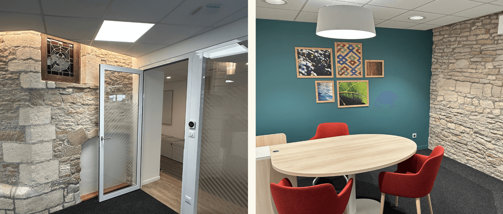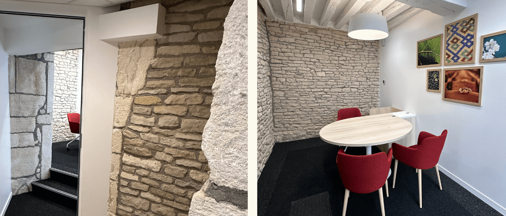 Nous avons également travaillé sur l’amélioration du confort grâce à une isolation renforcée et au remplacement des châssis simple vitrage, tout en optimisant les volumes pour intégrer le programme complet du Crédit Agricole Champagne-Bourgogne dans une surface maîtrisée.