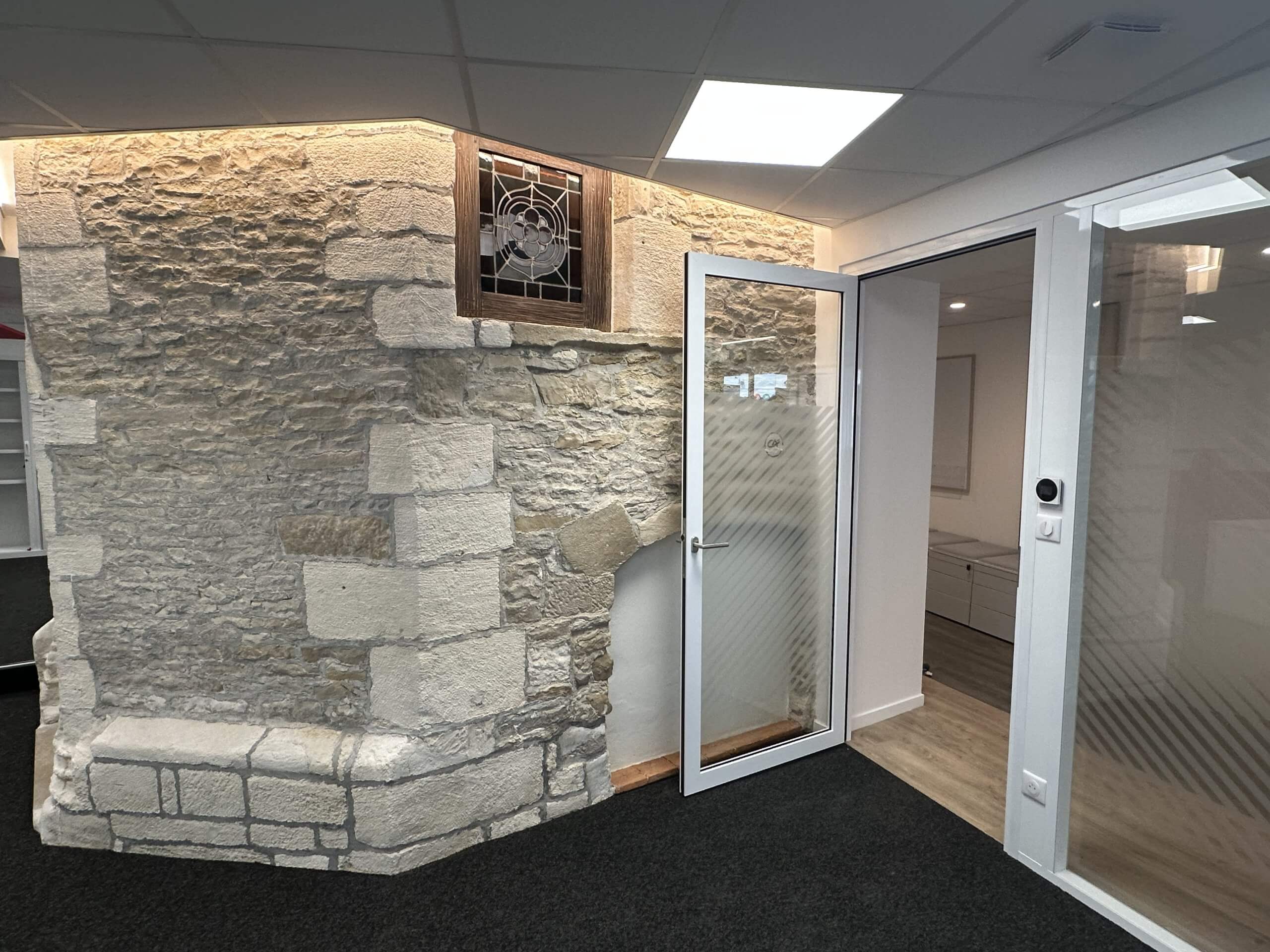 Dans ce cadre, Espace4 a accompagné la restructuration complète d’une agence pilote, installée dans un bâtiment ancien et singulier, présentant plusieurs spécificités patrimoniales et techniques.