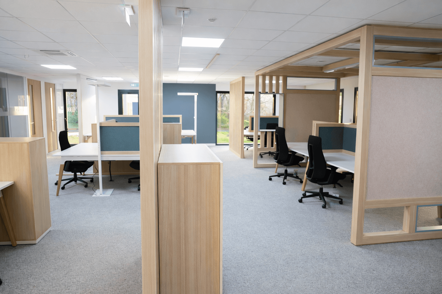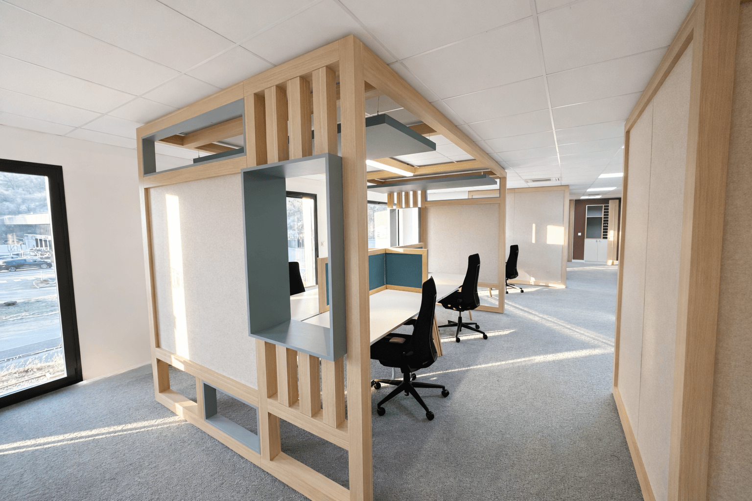 Le back office a fait l’objet d’un travail important pour regrouper les équipes sans fermer les espaces, en développant des zones semi-cloisonnées favorisant la synergie tout en préservant le confort de travail.