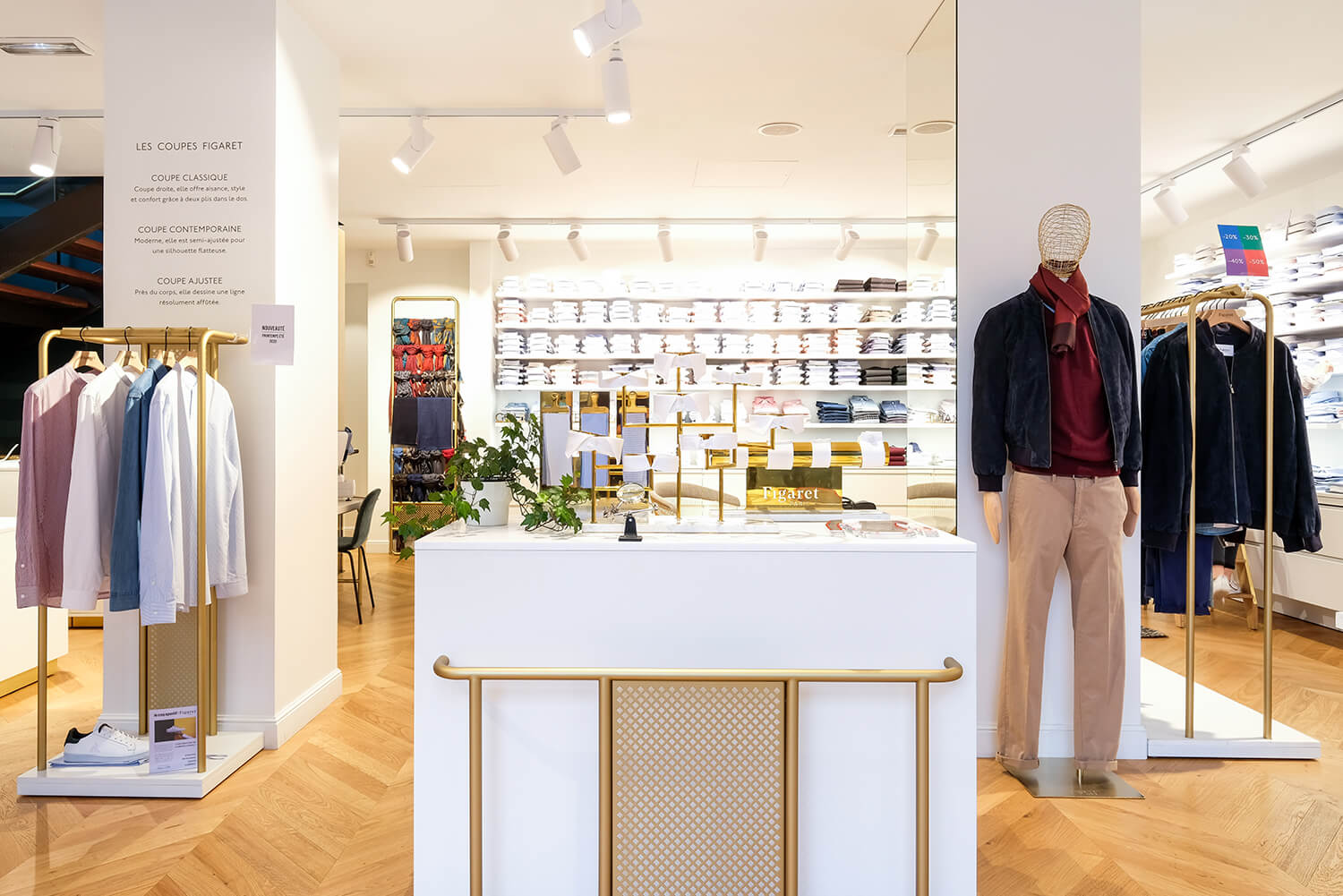 FIGARET PARIS, marque de prêt-à-porter spécialisée dans la chemise « sur-mesure », a souhaité mettre son image de marque au goût du jour en reliftant son concept de points de vente, afin de toucher une clientèle plus jeune et de développer son activité.