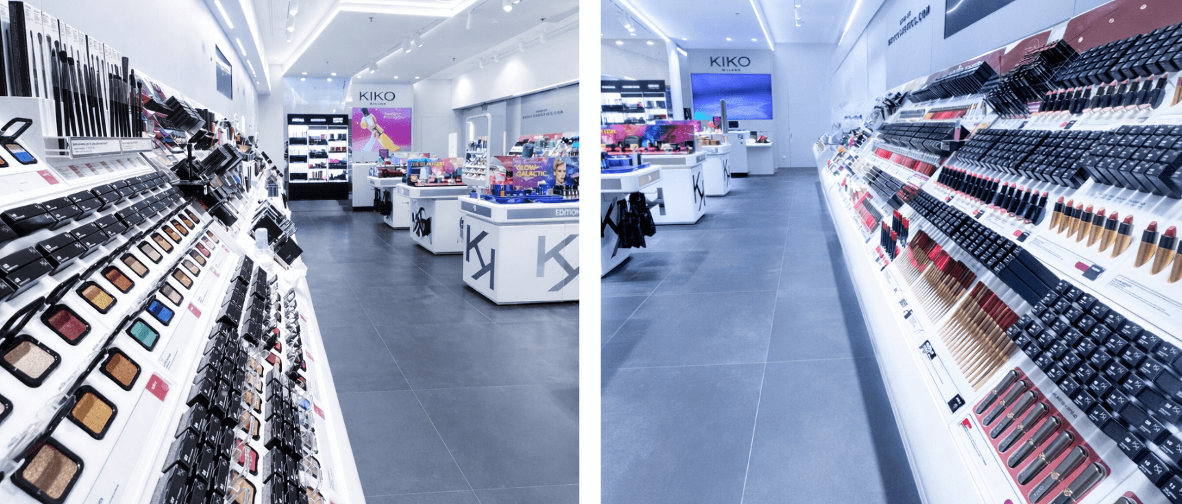 Pour KIKO Milano, nous sommes intervenus principalement sur des mises en concept partielles, ainsi que sur des créations de magasins, des duplications et des embellissements d’espaces existants.