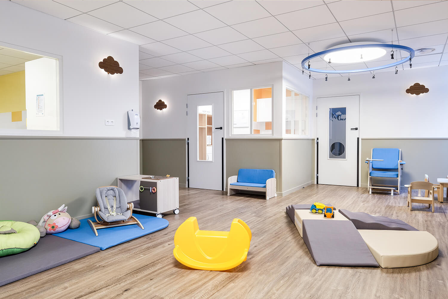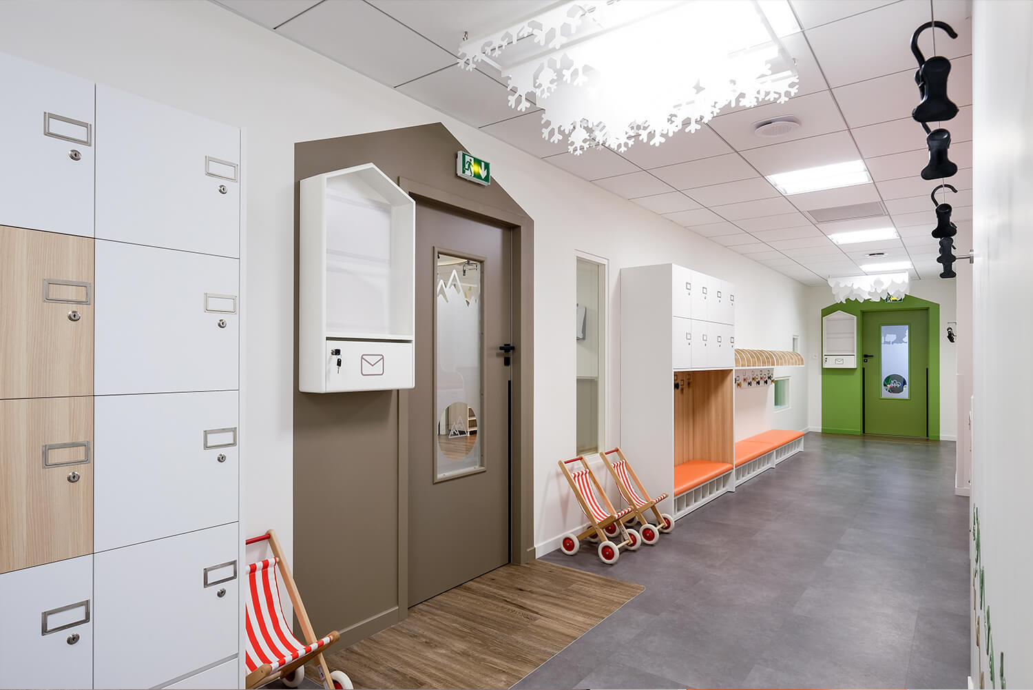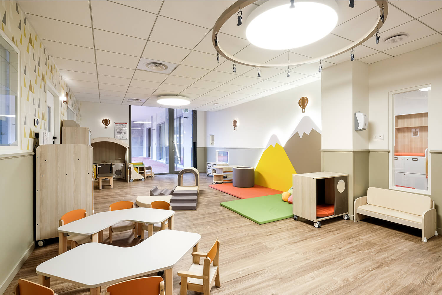 MNH SAE, acteur majeur dans le domaine des crèches hospitalières en France, cherchait un partenaire pour concrétiser son nouveau concept de crèche, décliné en fonction de l’âge des enfants autour de trois univers thématiques : les nuages, la montagne et la forêt.